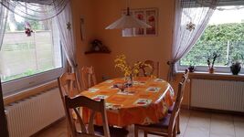Das Herz des Ferienhauses ist das große gemütliche Wohn-/Esszimmer. In der mit modernen Geräten ausgestatteten Küche, u.a. mit Kühl-Gefrierkombination, Backofen, Ceranfeld E-Herd, Mikrowelle und Geschirrspüler, macht es Spaß zu kochen.