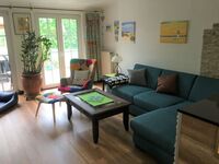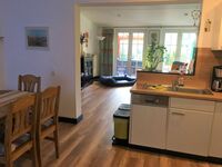 2 Schlafräume, einer mit Doppelbett, der andere Schlafraum mit zwei nebeneinander gestellten Einzelbetten, großer Wohnraum mit offener Küche (komplett ausgestattet) und Essplatz, Geschirrspüler, Waschmaschine und Trockner im HWR, Satelliten-TV, CD-DVD-Radio, kostenloser Internetzugang über DSL, 2 Stellplätze direkt am Haus auf dem Grundstück, Unterstellmöglichkeiten für Fahrräder, große Terrasse die teilüberdacht ist, Gartenmöbel, Grill. Ein Kinderreisebett kann auf Anfrage kostenlos zur Verfügung gestellt werden, ebenso ein Kinderhochstuhl.