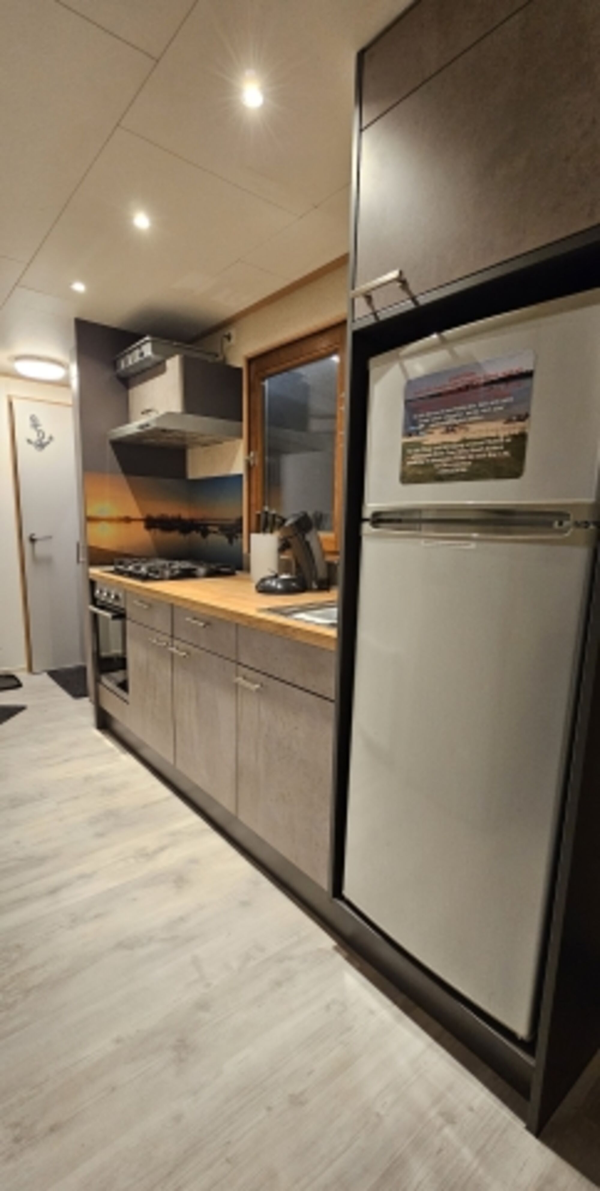 4-Platten Herd, Cerankochfeld, Gasofen / Gasherd, Dunstabzugshaube, Kühlschrank mit Gefrierfach, Senseo-Kaffeeautomat, Korkenzieher / Flaschenöffner, Gewürze (Salz, Pfeffer, Zucker)