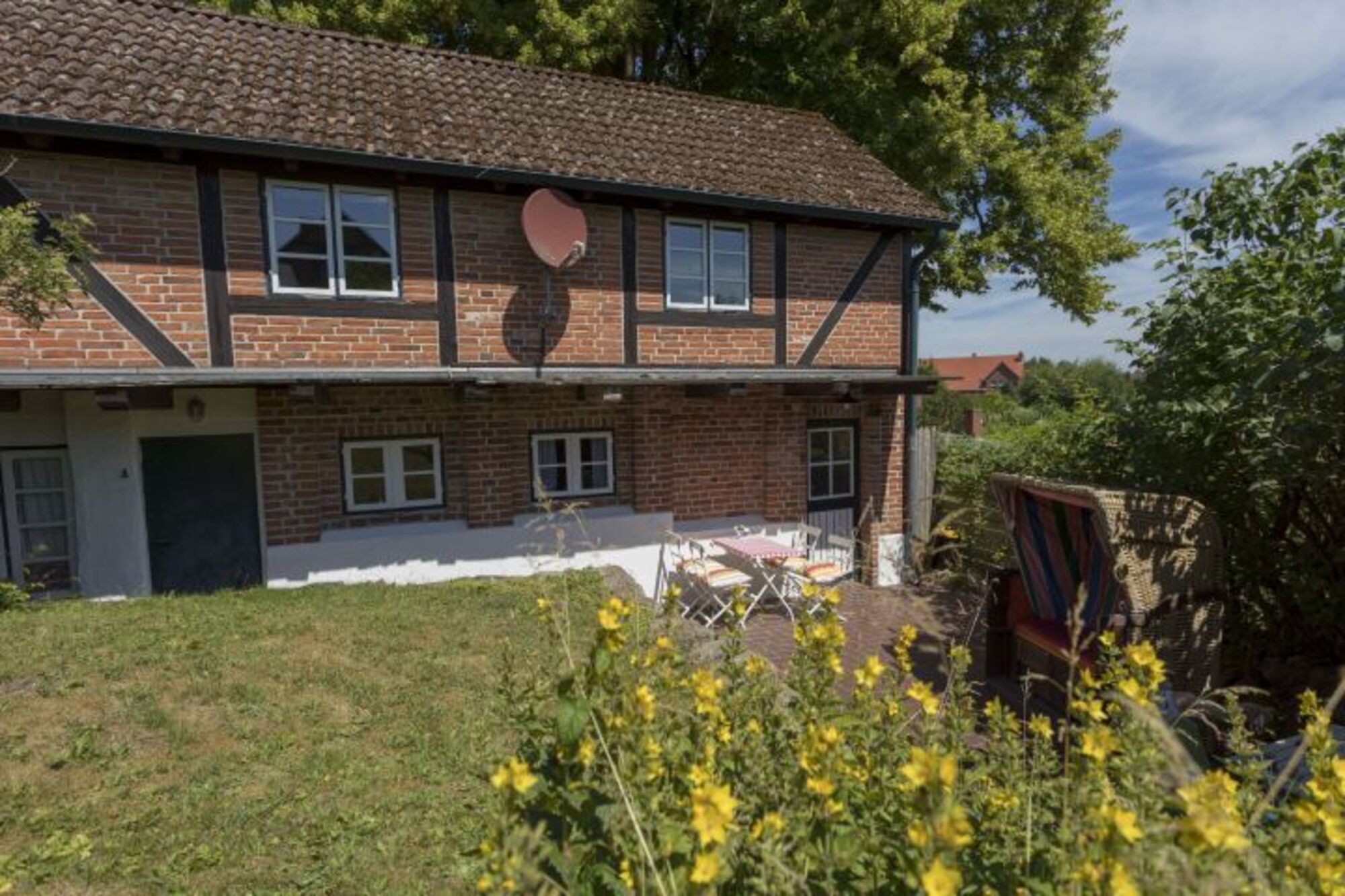 Das Haus verfügt über eine eigene Terrasse mit Gartentisch und Stühlen sowie einem Strandkorb, die sich hervorragend zum Frühstücken, Entspannen oder Grillen eignet.