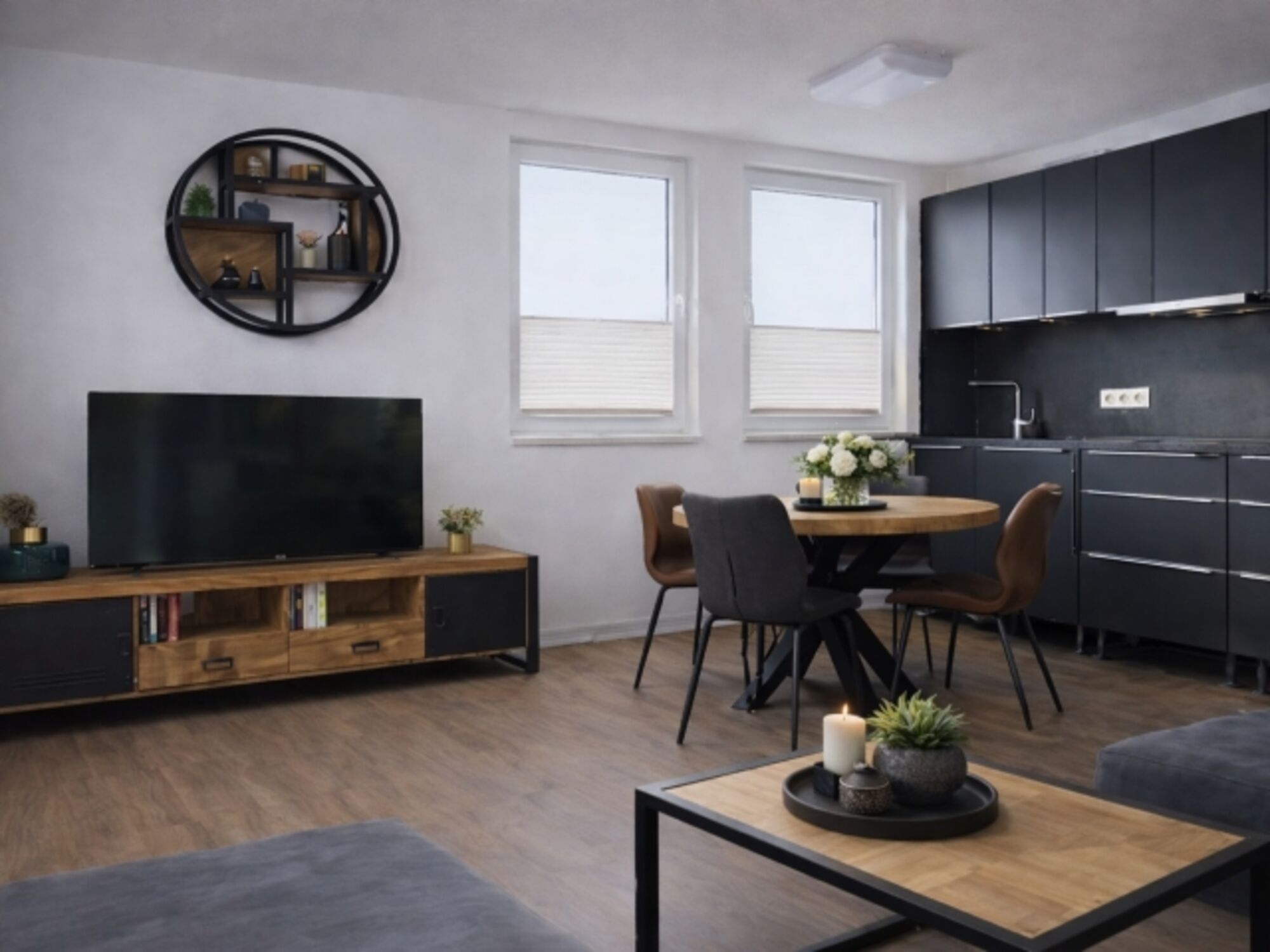 -ein Wohnzimmer mit Wohn-Essbereich