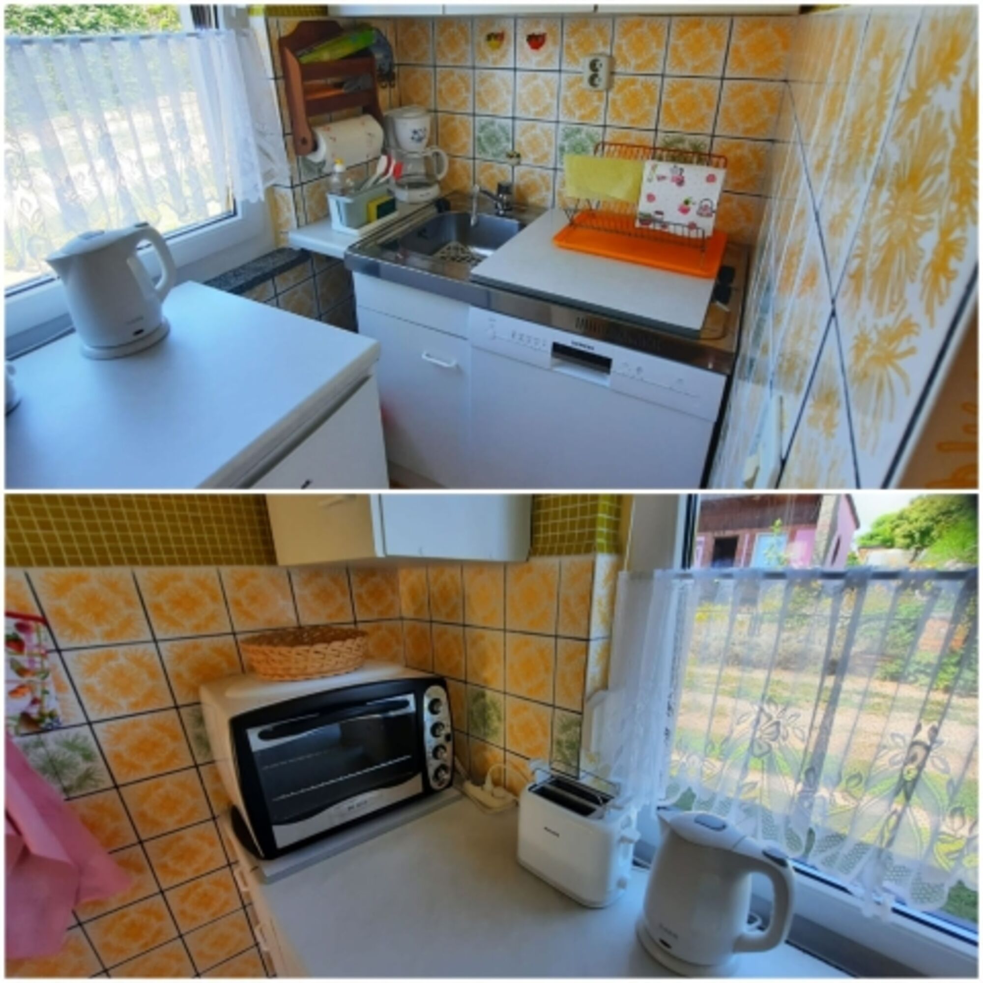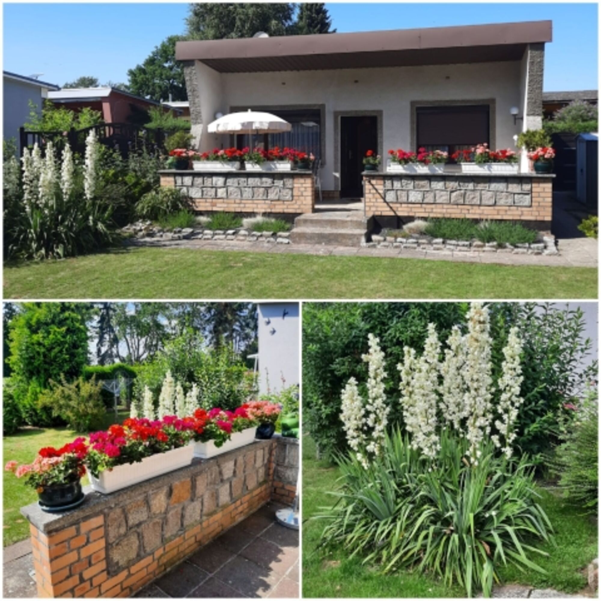 Neben einem seperaten Schlafzimmer mit 2 Betten angrenzend zum Bad (WC/Dusche) verfügt der Bungalow über einen großzügigen Wohnraum mit einer gemütlichen Sitzecke, wo gemeinsam gegessen oder Fernseh geschaut werden kann. In der Küche stehen alle Kochuntersilien inklusive Geschirr und Töpfe für die Zubereitung von Mahlzeiten bereit, die bei schönen Wetter gerne auf der großen Terasse verspeist werden können. Das zum Bungalow gehörende Gartenstück ist von allen Seiten mit Zäunen eingegrenzt, so dass sie ihre Hunde dort sorgenfrei herumtollen lassen können. Für Parkplätze ist direkt hinter dem Bungalow gesorgt.