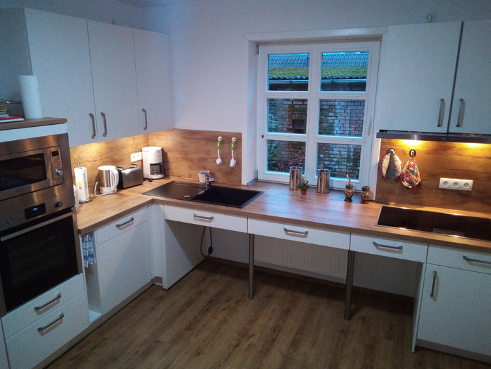 4-Platten Herd, Dunstabzugshaube, Korkenzieher / Flaschenöffner, Geschirrhandtücher