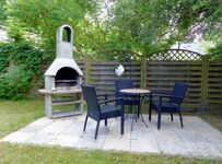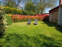 Umgeben von Hecken, sichtgeschützt, ca. 60 m von der nächsten Straße entfernt - ideal zum Erholen für Mensch und Tier. Die überdachte Terrasse lädt zum Frühstück im Garten ein und abends bietet sich unser großer Grill für das Abendessen an. Es sind Gartenmöbel, wie eine Hollywoodschaukel, Gartenliegen, Sonnenschirm, Grill usw. vorhanden. Auf der Liegewiese, in Südrichtung, lässt sich die Sonne ebenso wunderbar genießen. Es steht Ihnen auch ein eigener Zugang zum Grundstück zur Verfügung.