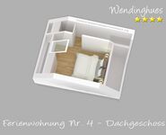 Im Dachgeschoss befindet sich noch ein 2x1,80m Doppelbett-Schlafzimmer mit TV.