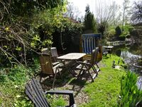 Dort liegt das separate Grundstück an der Süderelbe großem Angelsteg und Gartenmöbeln. Erleben Sie hier Ebbe und Flut und beoachten die reichhaltige Tierwelt.