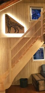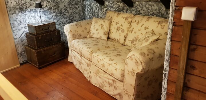 Auf der Empore (welche nur durch einen Vorhang vom Schlafzimmer getrennt ist) gibt es noch eine Couch zum Ausziehen (1,40 x 2,00m) Doppelbett 1,80 x 2,00m, Leselampe am Bett