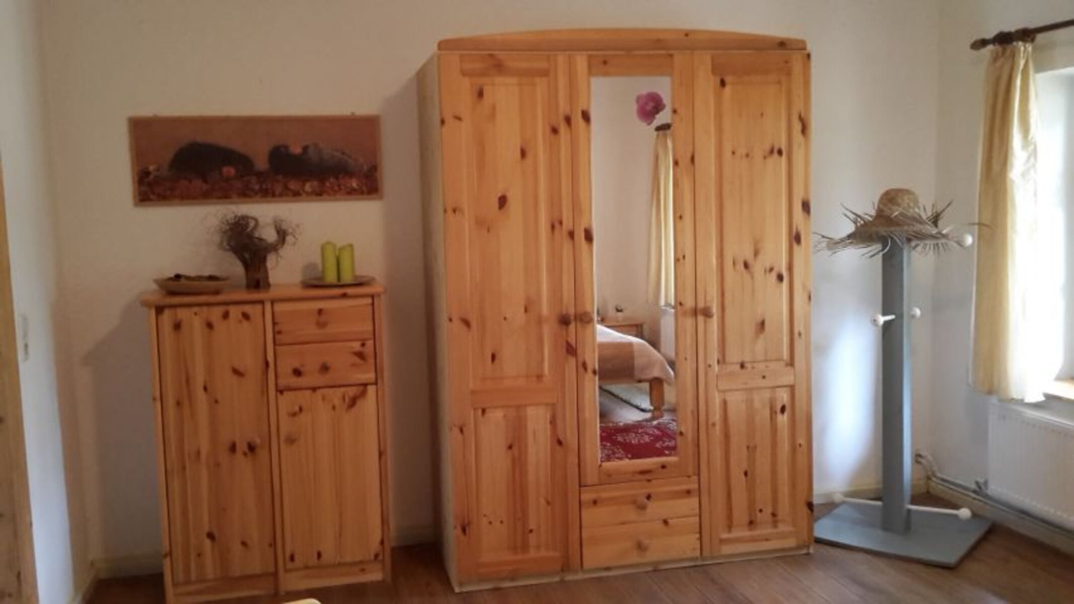 Doppelbett 1,80 x 2,00m, Kommode, Spiegel, Leselampe am Bett