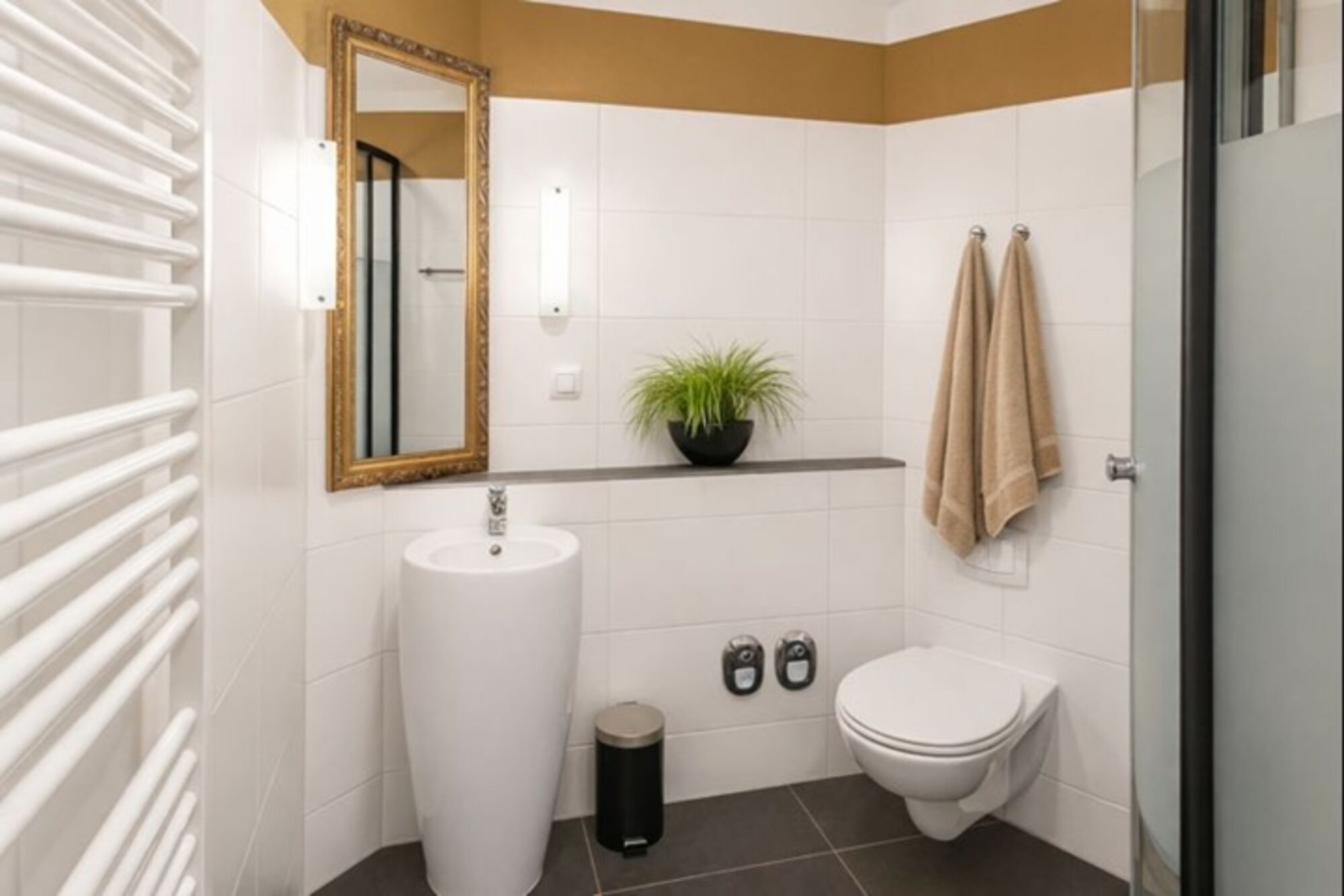 Das Bad ist mit einer ebenerdigen Dusche und WC ausgestattet.
