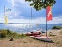 In 500 m erreichen Sie die idyllische Hafenpromenade, gemütliche Gaststätten, Cafe`s und Einkaufsmöglichkeiten. Vom Wieker Hafen starten die Fahrgastschiffe zur Insel Hiddensee-ein Ausflug, den sie sich nicht entgehen lassen sollten. Im Yachthafen Wiek können Sie Boot chartern oder Kanus ausleihen.