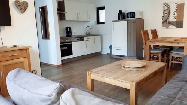 Whg. 1 ist eine ebenerdige 3-Raum-Whg. für bis zu 6 Personen mit eigenem kleinen eingezäunten Garten, Preis 99€ pro Nacht, Hauptsaison (Juli/August) 119€.