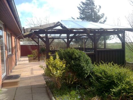 - Neben einer überdachten Frühstücksterrasse können Sie auch auf der seitlich verglasten und mit einem großzügigen Glas-Pavillon überdachten Südterrasse luftig und doch windgeschützt sitzen oder TT-Turniere durchführen oder Grillen oder die weite Aussicht genießen oder ...