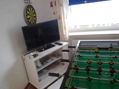 - ein Spielzimmer mit großem Kicker, TV und einer Wii mit etlichen Spielen, eine Dartscheibe