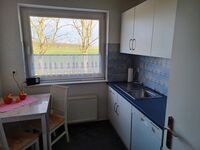- eine komplett eingerichtete Küche mit kleinem Esstisch, Kühlschrank mit Gefrierteil, Ceranfeld, Backofen, Mikrowelle usw.