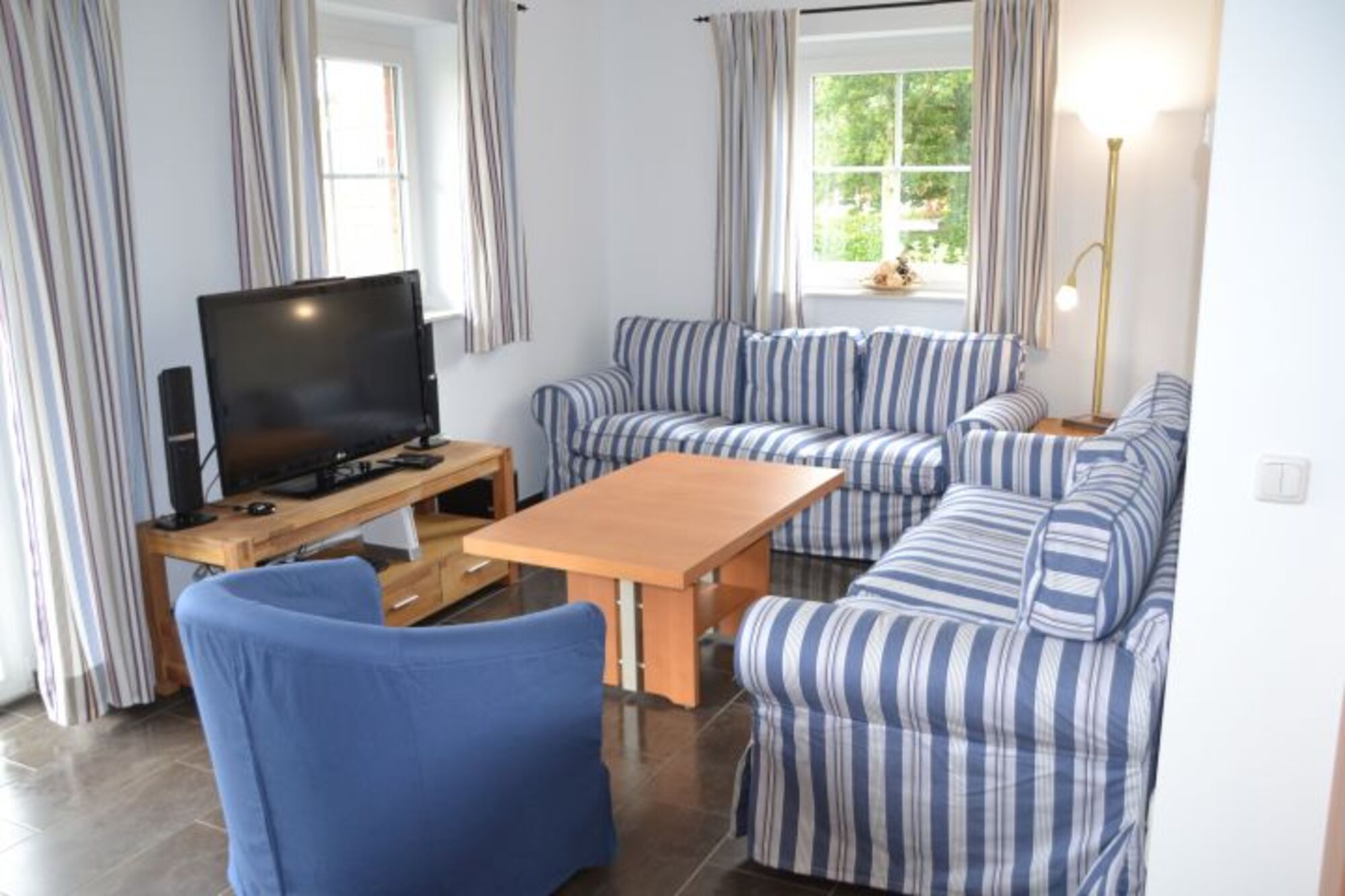 Zusatzausstattung: Bibliothek, Waschmaschine, Bügeleisen, Bügelbrett, Stereoanlage, Blu-Ray-Player, Fernseher, SAT-TV, DVD Player, WLAN, Telefon, Kinderreisebett, Hochstuhl, Saison-Strandkorb am Strand (Mai-Sept.)
