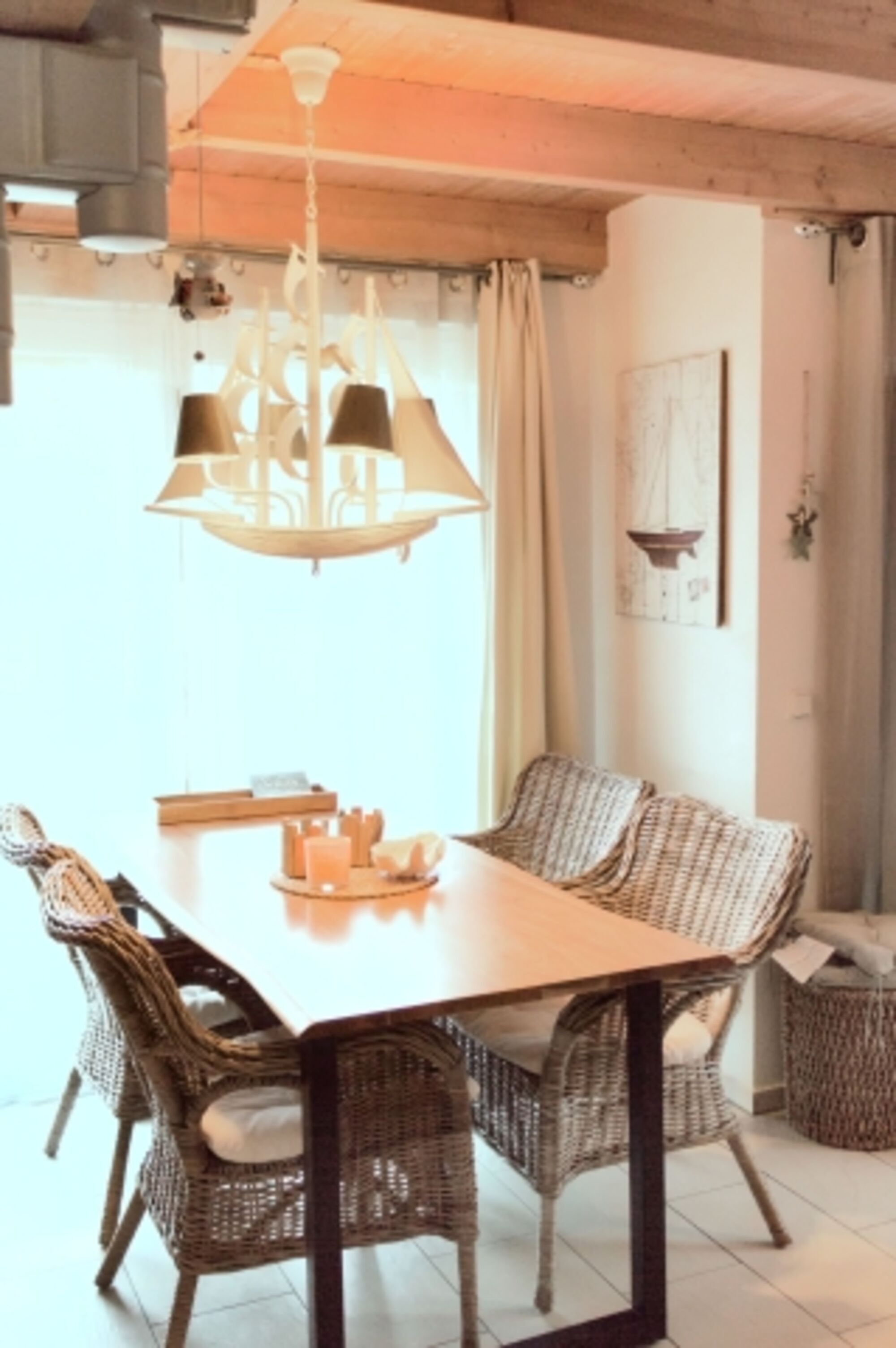 In der Küche ist ein Side by Side Kühlschrank mit großen Gefrierschubladen, ein großer Backofen mit Umluft, ein Geschirrspüler sowie eine Waschmaschine integriert. Die Küche ist weiterhin mit einer Kaffeemaschine, zusätzlich einer Senseo Padmaschiene, Wasserkocher, Mikrowelle mit Grill, Sandwich-Toaster, Mixer und Backzubehör und jede Menge anderer Utensilien ausgestattet.