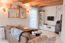 Der lichtdurchflutete Wohn- & Essbereich ist eingerichtet mit einem bequemen 3 Sitzer Sofa, Esstisch für 4 Personen, jede Menge Ablagemöglichkeiten, 3D Fernseher und einen Kamin für kältere Abende.