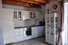 Das Erdgeschoss verfügt über einen Wirtschaftsraum inkl. Waschmaschine und Bügelzubehör, ein maritimes Bad mit Dusche und WC, das kuschelige Schlafzimmer 'Meeresbrise' mit Doppelbett (1,80m) sowie einem offen gestalteten Wohn-& Esszimmer mit offener Küche. Das im modernen Landhausstil eingerichtete Wohnzimmer verfügt über eine Eckcouch, 42' Flachbildschirm, einen DVD-Player und eine Stereoanlage. Neben Kuscheldecken für die kühleren Tage oder gemütlichen Abende finden Sie hier auch eine kleine Auswahl an DVD`s für unsere kleinen und großen Gäste sowie Bücher und Gesellschaftsspiele. Das Esszimmer bietet an dem großen Esstisch Platz für 6 Personen plus Kleinkind. In dem zur Verfügung stehenden Kinderhochstuhl behält auch der / die Kleinste den Überblick über das Frühstück oder Mittag- / Abendessen am Tisch. Gläser für Wein, Sekt, Bier, Saft / Wasser und Schnaps stehen selbstverständlich ausreichend bereit. Die Küche ist ausgestattet mit einem Geschirrspüler, Herd mit Ceran-Kochfeld, Backofen, Mikrowelle, Kaffeemaschine, Kaffeevollautomat, Küchenmaschine, Wasserkocher, Eierkocher, Waffeleisen, Toaster, Sandwichtoaster, allen wichtigen Kochutensilien sowie ausreichend Geschirr - so macht Kochen Spaß!