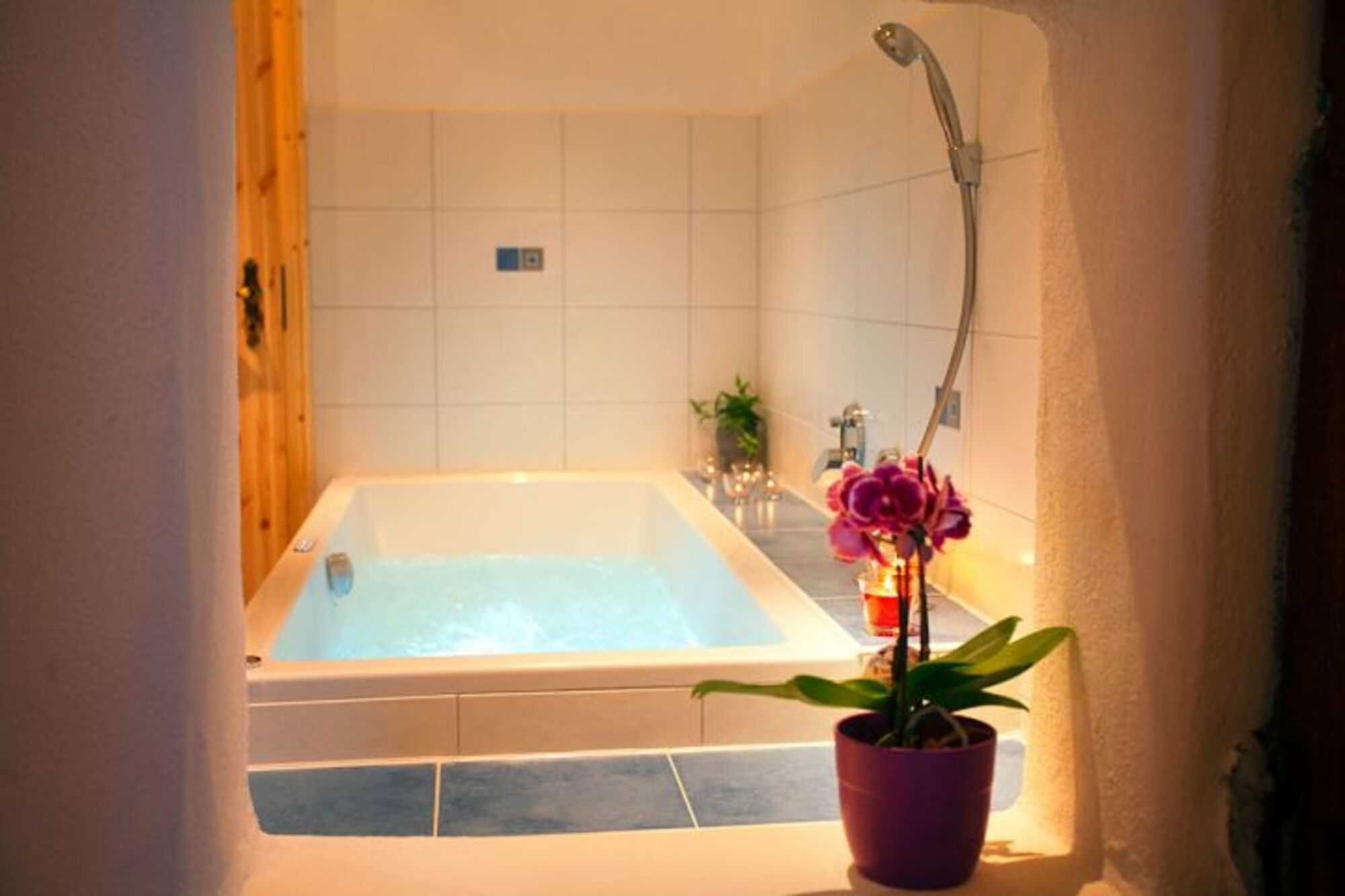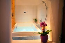 - Wellnessbereich mit Whirlpool, großer ebenerdiger Dusche und separaten WC
