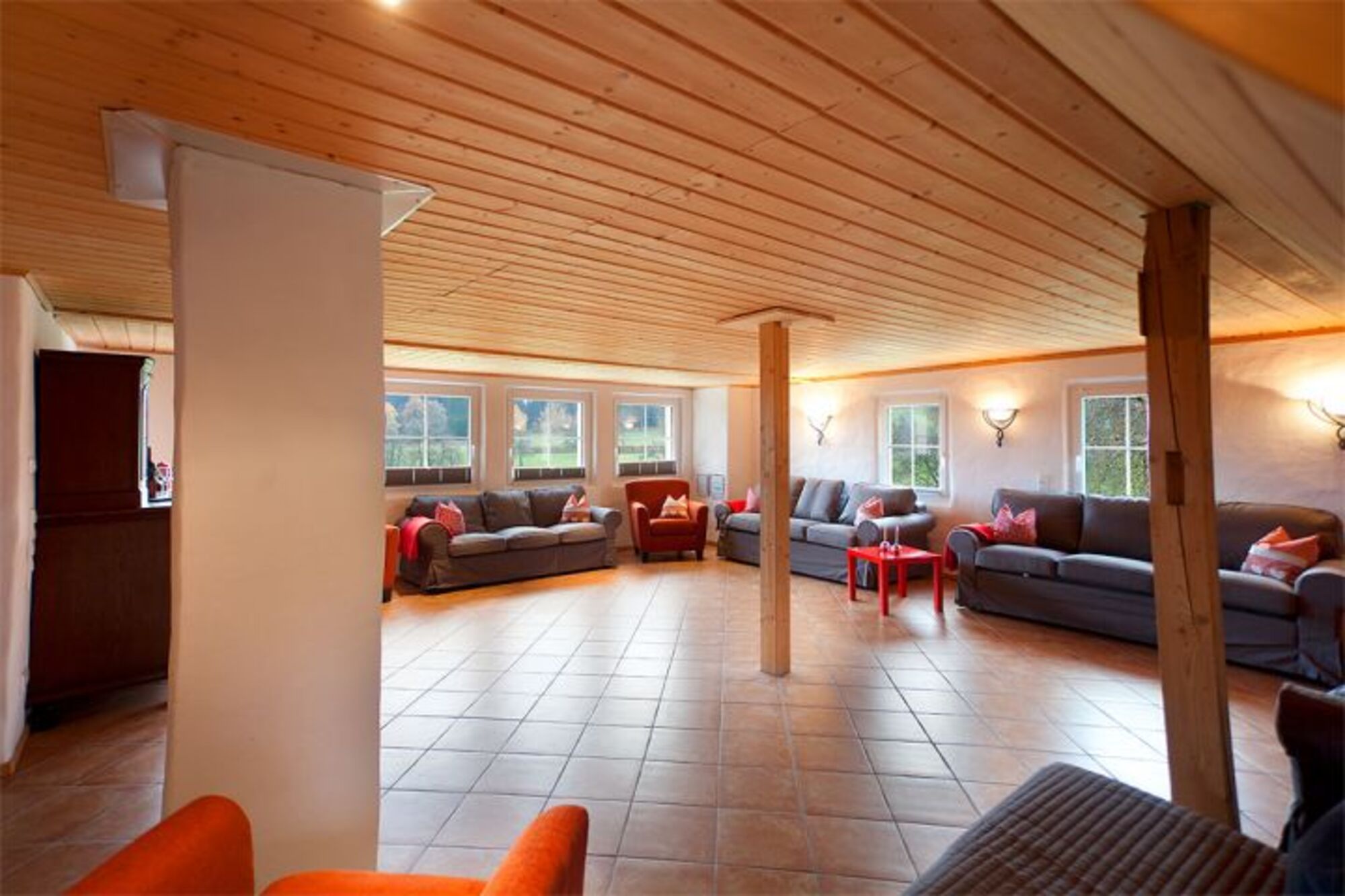 - großer Aufenthaltsraum mit 4 Schlafcouchen (160 x 200 cm), Beamer und Leinwand