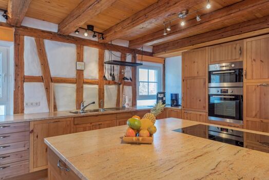 - große modern ausgestattete Küche mit Induktionsherd, Backofen, Mikrowelle,