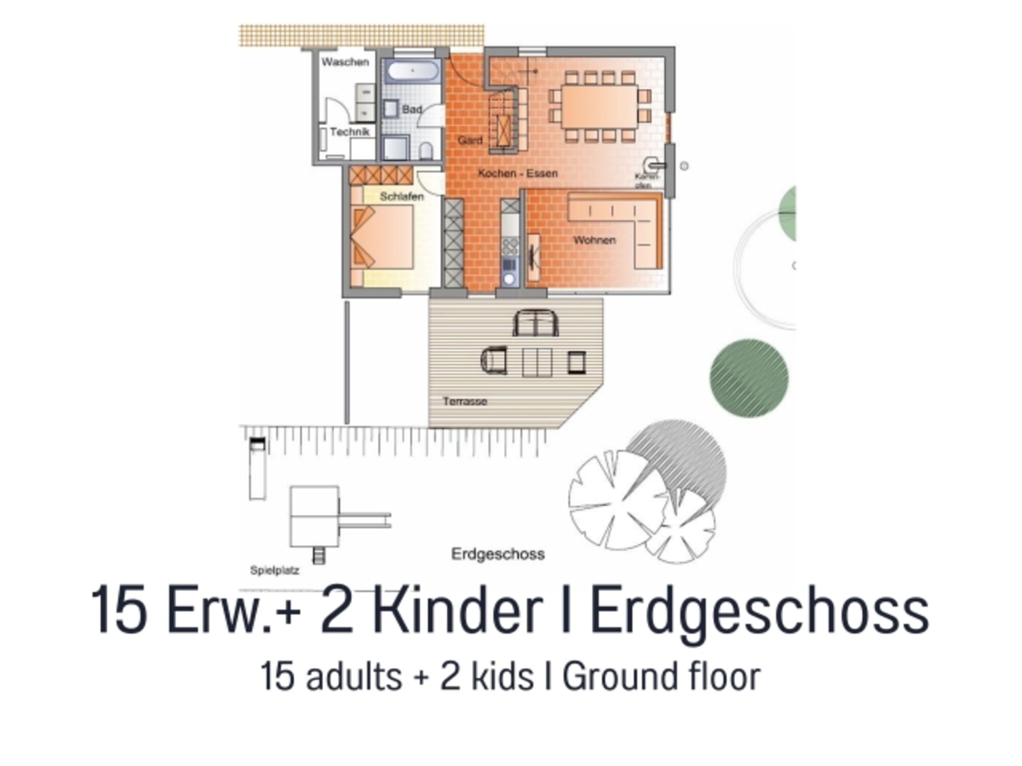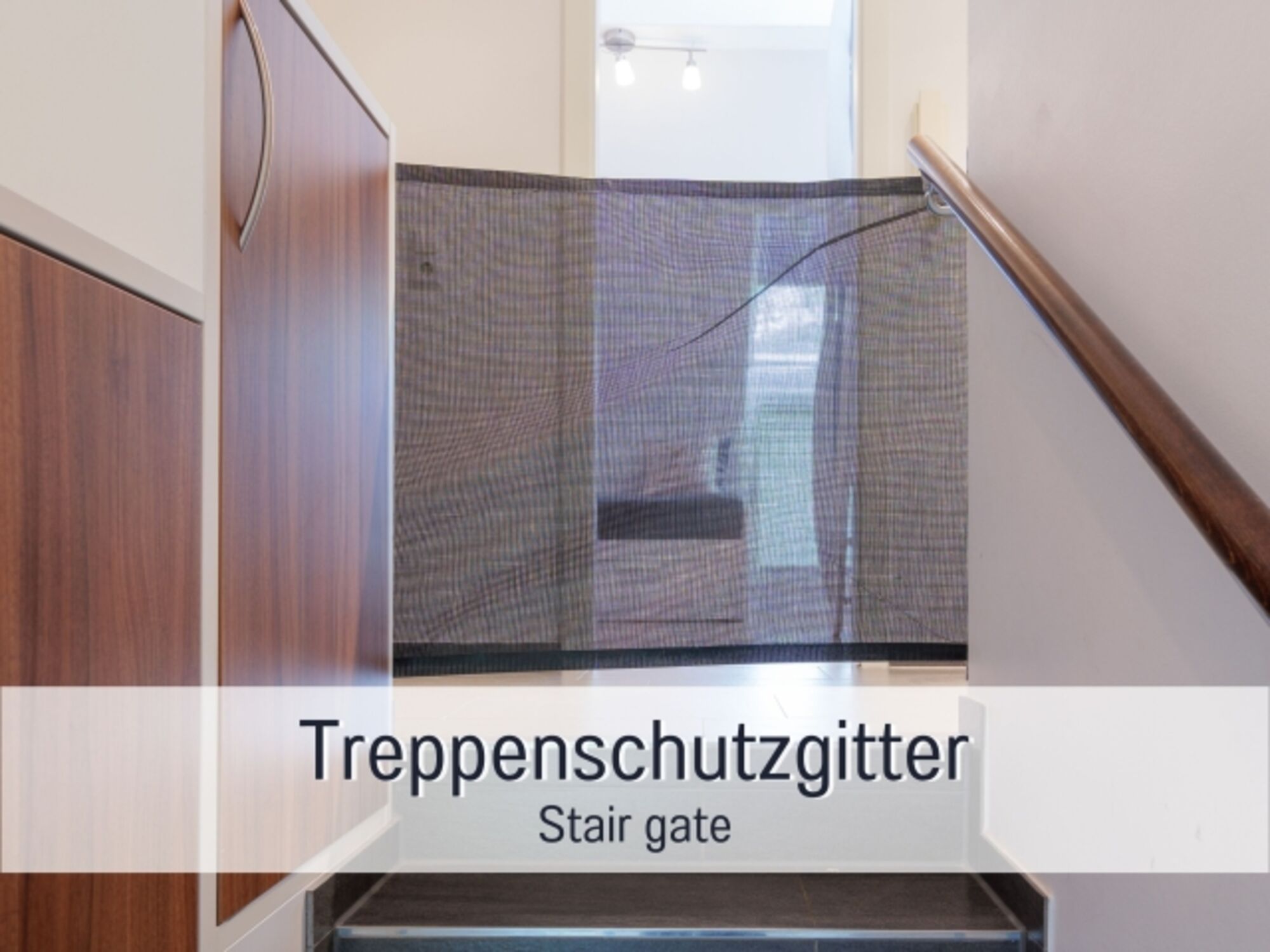 Hochstuhl, Kinderreisebetten sind auch vorhanden. Eine schöne Terrasse, Grill, Gartenmöbel, PKW-Stellplatz direkt am Haus, Waschmaschine, Wäschetrockner, Hochstuhl und Gitterbettchen, Garten direkt am Landschaftsschutzgebiet mit eigenem Spielplatz mit Spielturm, Schaukel, Sandkasten und 3 Rutschen.