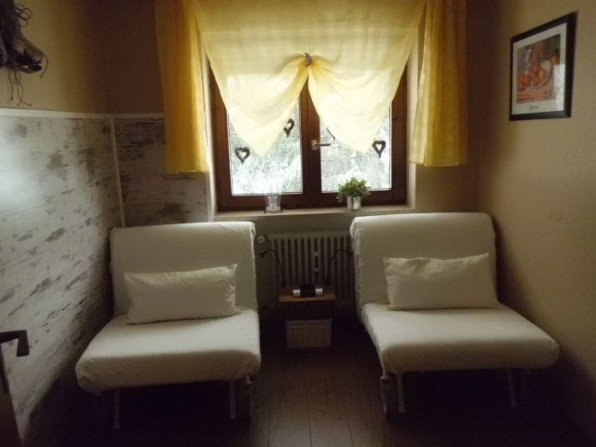 Das Zimmer ist mit 2 hochwertigen einzelnen Schlafsesseln mit Lattenrost und Latexmatratze ausgestattet. Diese werden nach Anzahl der Belegung vorbereitet. Einzelbett, Wecker, CD-Player, Spiegel, Leselampe am Bett