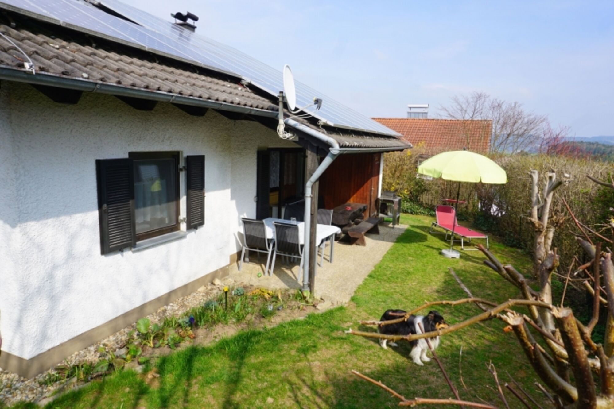 Der Garten ist eingezäunt, so dass Sie sich keine Sorgen machen müssen, dass sich Ihr Vierbeiner ungewollt auf einen Ausflug macht.