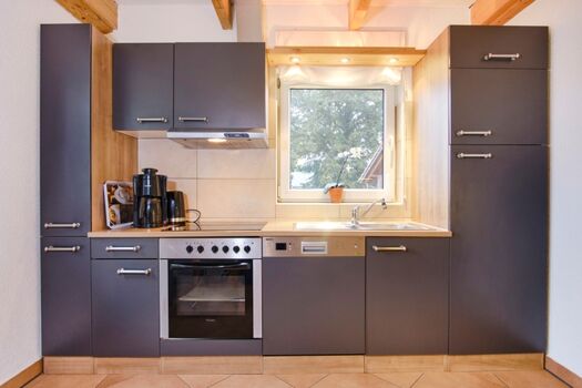 Das ebenerdige Domizil für bis zu 4 Personen verfügt über ein großes komb. Wohn-/Esszimmer mit Kaminofen, 1 offene Küche, 2 Schlafräume, 1 Bad und einen eingezäunten Gartenbereich.