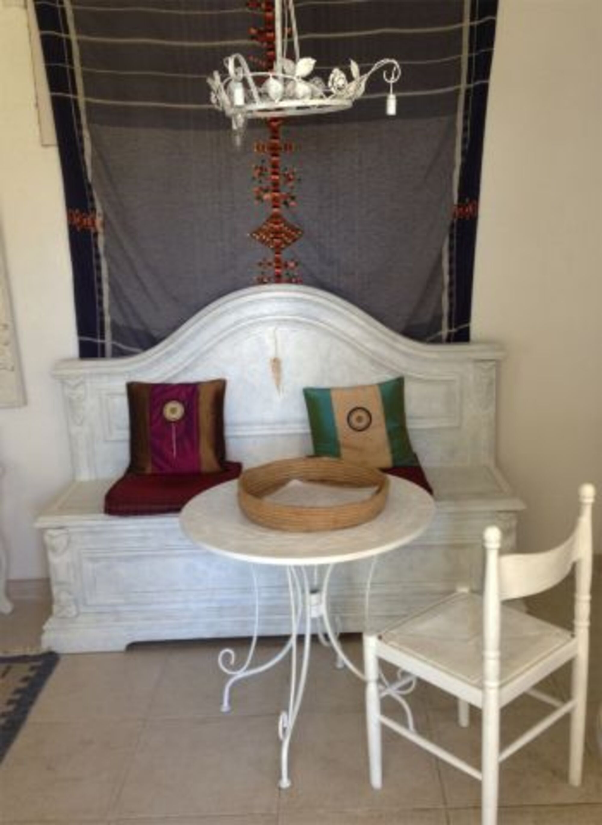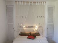 Das kleine Windhaus hat einen separaten Eingang unterhalb des großen Windhauses und besteht aus einem Schlaf-Wohnzimmer, einer Küche mit Gasherd, Mikrowelle, Geschirr, Besteck etc.. und einem Bad mit Dusche. Das kleine Windhaus hat einen eigenen Bereich im Garten mit Meerblick.