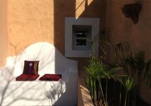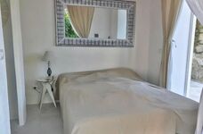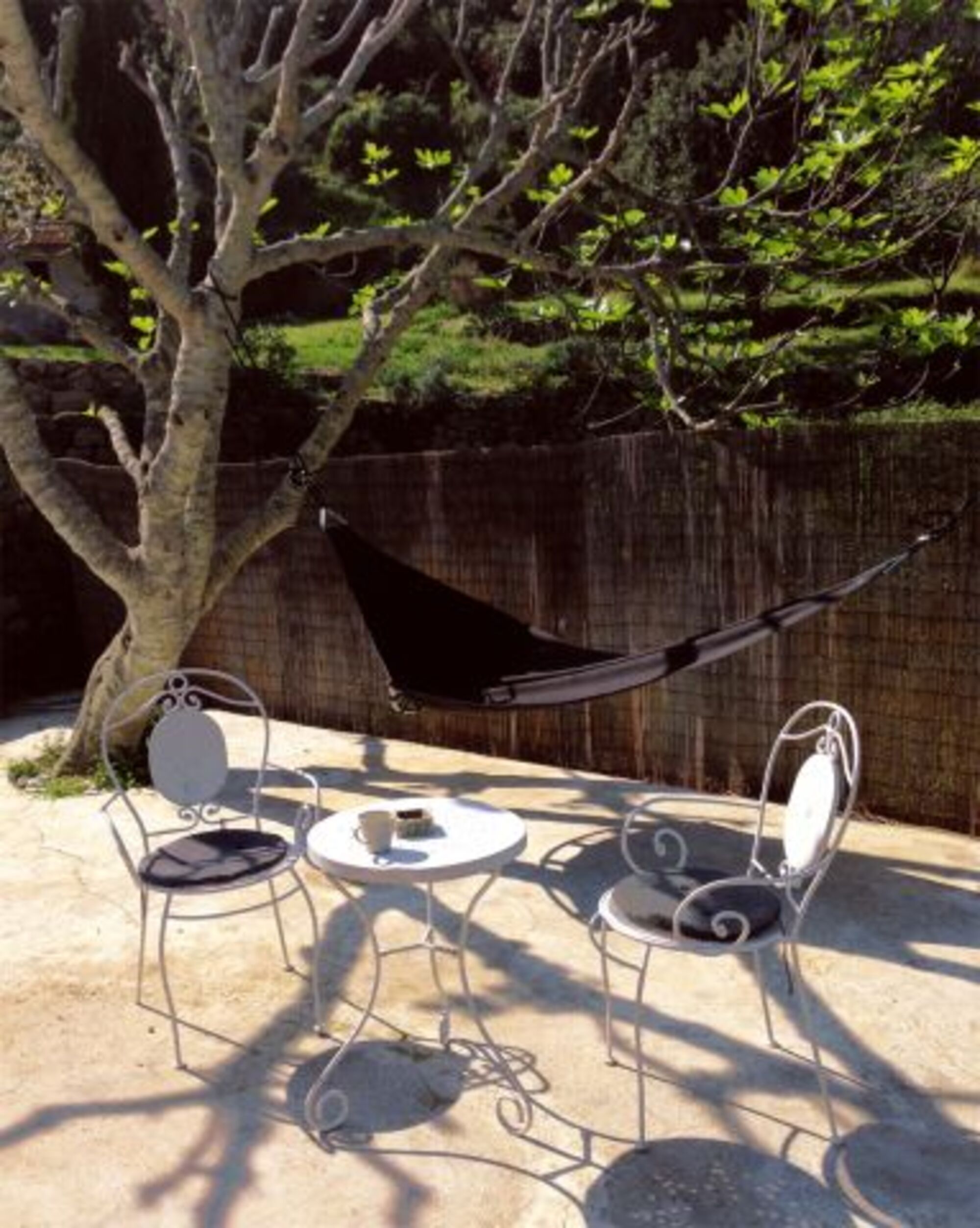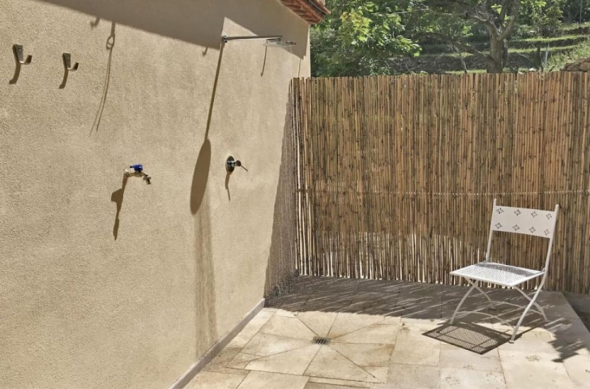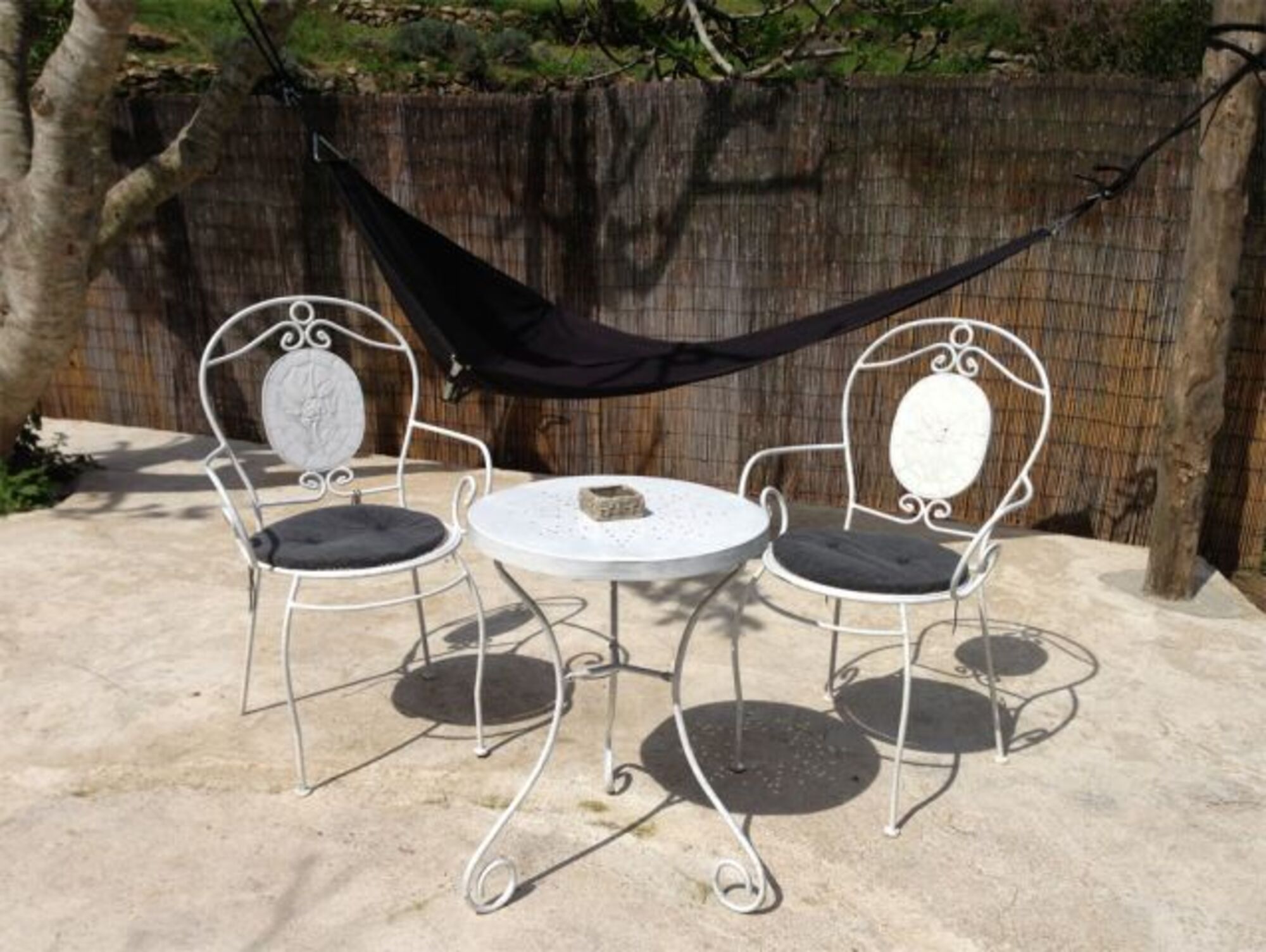 Im freien zwischen Feigenbäumen befindet sich eine geräumige Sitz-Essgelegenheit mit Barbecue und eine Freilanddusche für die Naturliebhaber.