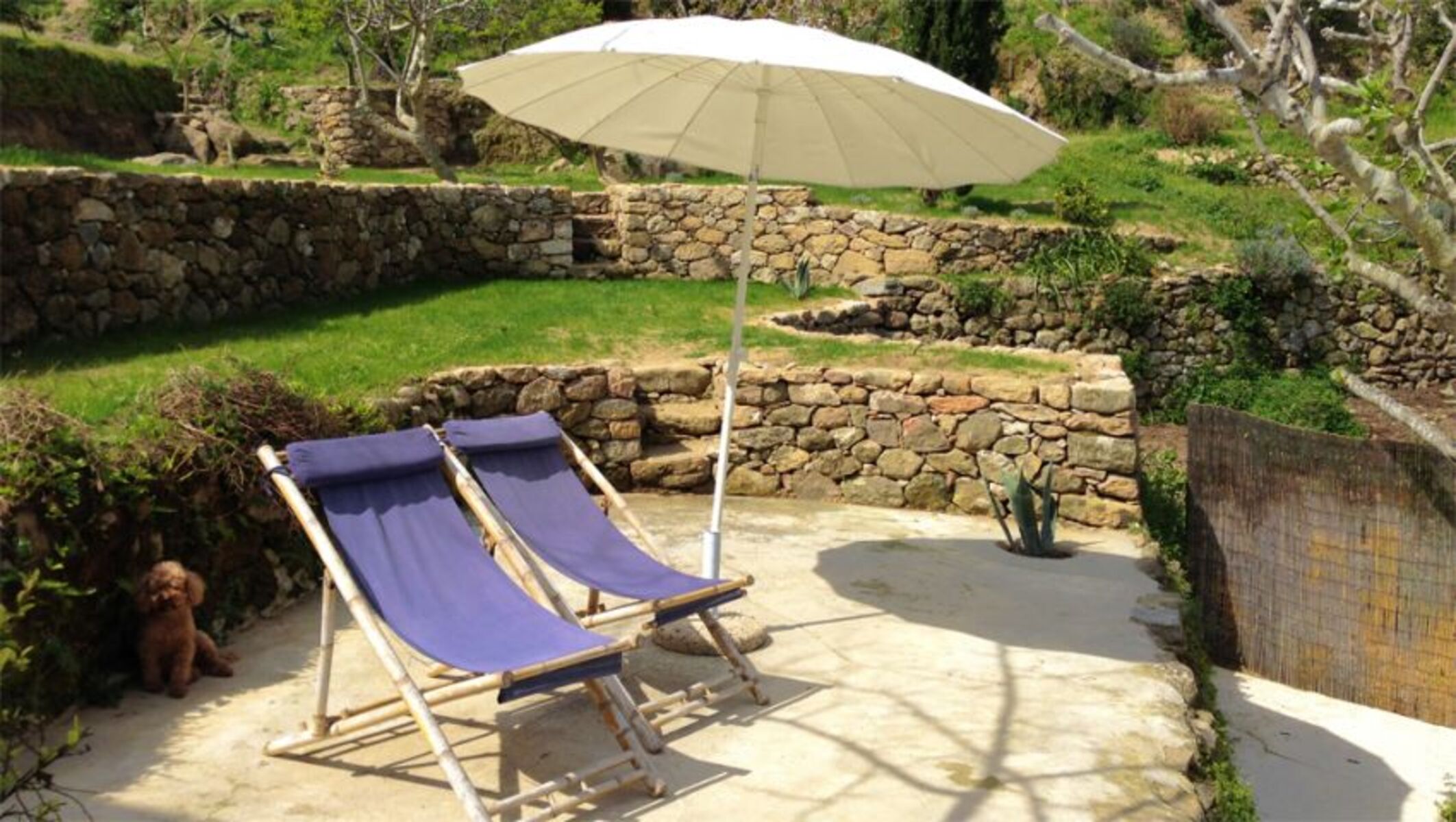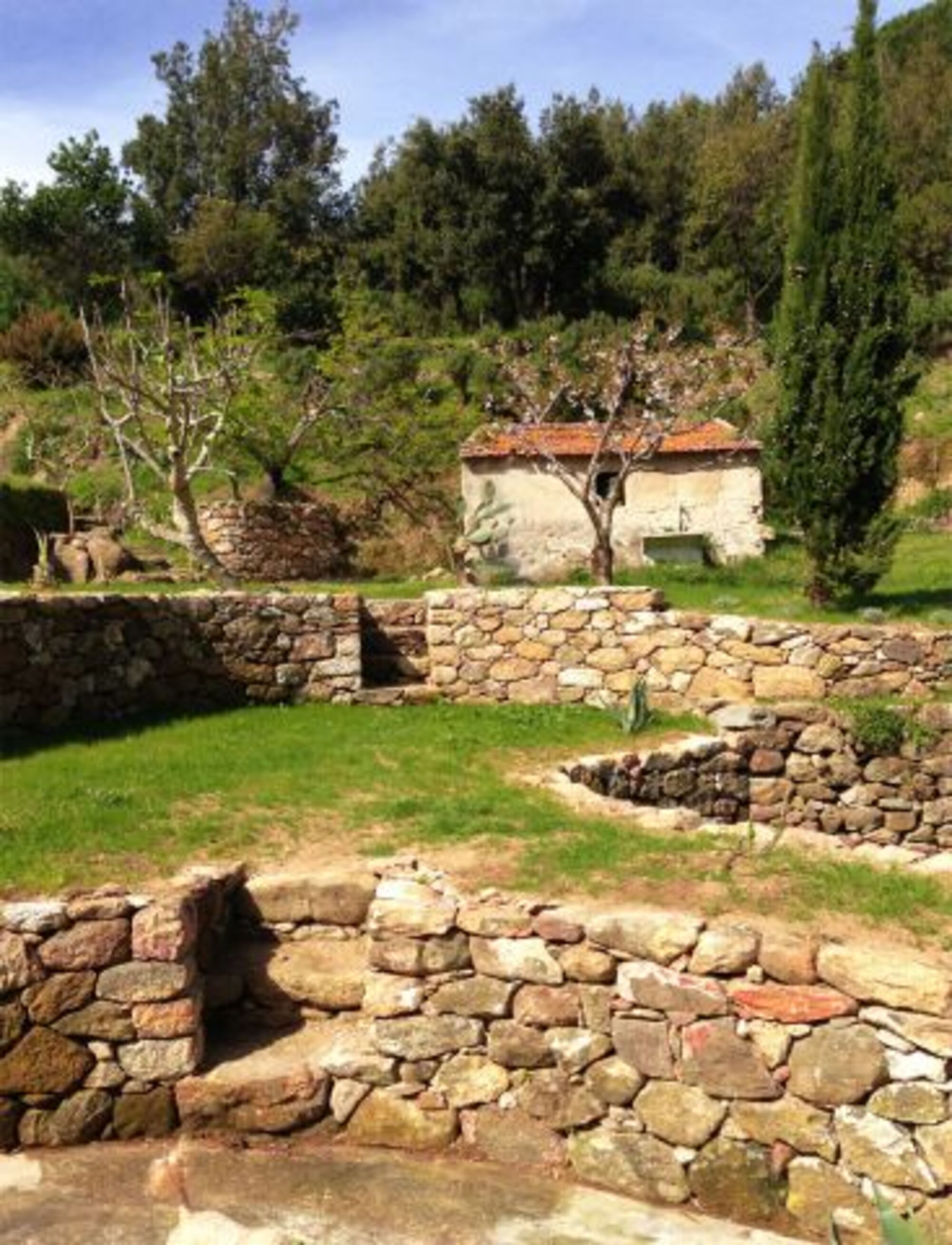Hinter dem Haus befindet sich ein Garten aus antiken Weinterrassen bestehend welcher mit seinen Bäumen in den heißen Stunden erfrischenden Schatten bietet, und ein privates Grundstück von zirka 4000 qm² welches sich in den Naturschutzpark der Insel Elba zieht und einen interessante Abwechslung für Kinder und Naturliebhaber bietet um die typische Flora und Fauna der Gegend zu erkunden.