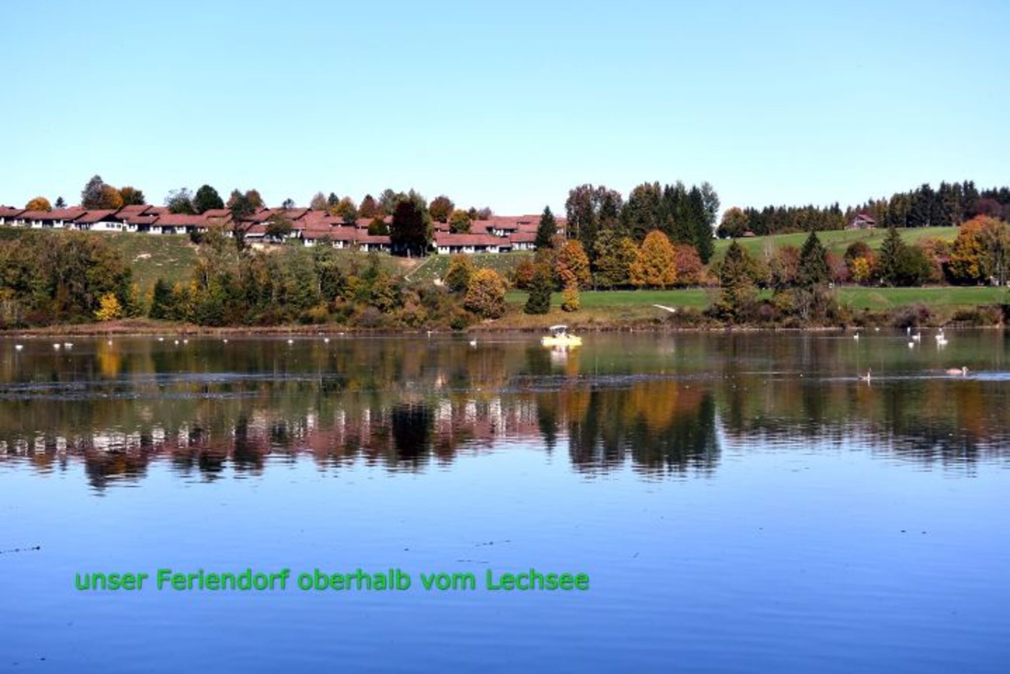 Urlaub in Bayern - Ferienhaus "überm See" ganz am ruhigen Außenrand der Ferienanlage im Hochbergle oberhalb vom Lechsee.