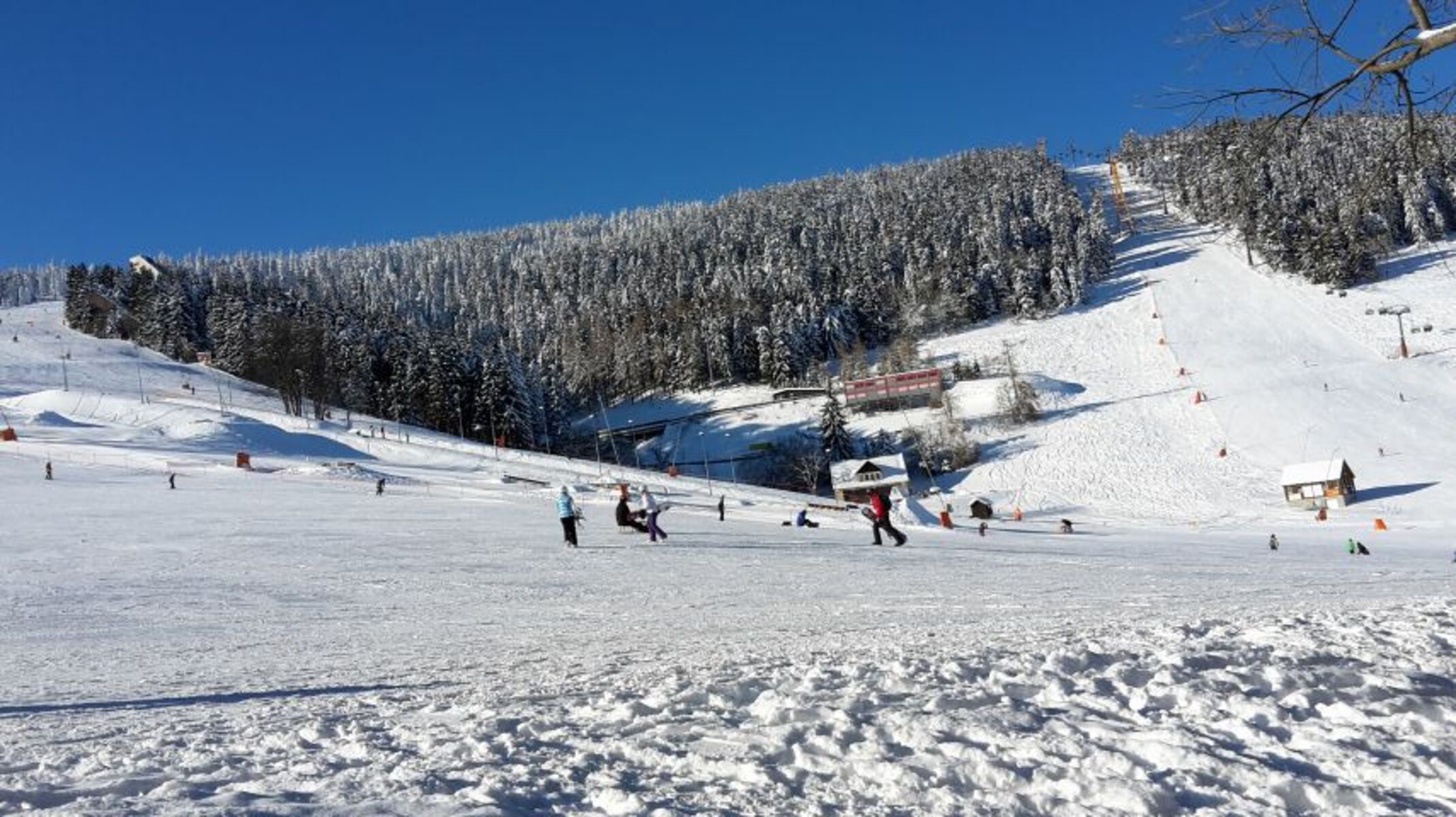 Bei guten Schneebedingungen können Kinder und Junggebliebene sich auf dem ca. 40m entfernten Rodelhang austoben.