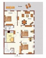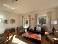 Die Wohnung mit ca. 138 qm hat eine große Terrasse und Garten. Sie besteht aus einem Wohnzimmer mit Couchgarnitur und Esstisch, einer komplett ausgestatteten Wohnküche mit Essplatz, zwei Schlafzimmern mit Doppelbetten, einem Schlafzimmer mit 2 Einzelbetten, sowie einem Bad mit Wanne, Dusche, Doppelwaschbecken und WC. Ein weiteres WC befindet sich im Eingangsbereich des Hauses. Die Wohnung ist komplett ausgestattet für 6 Personen + 1 Kleinkind. Kinder und ein Haustier sind herzlich willkommen!