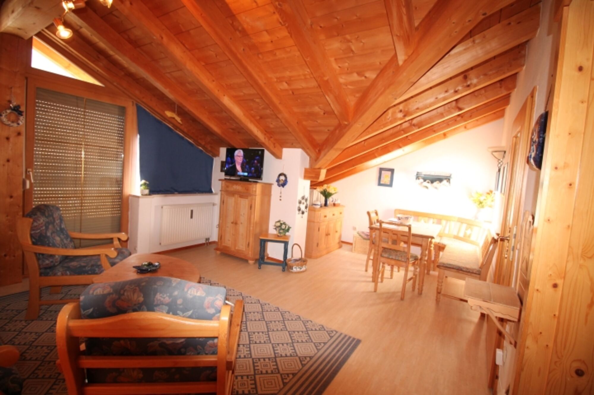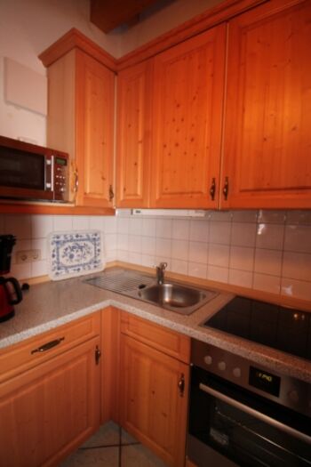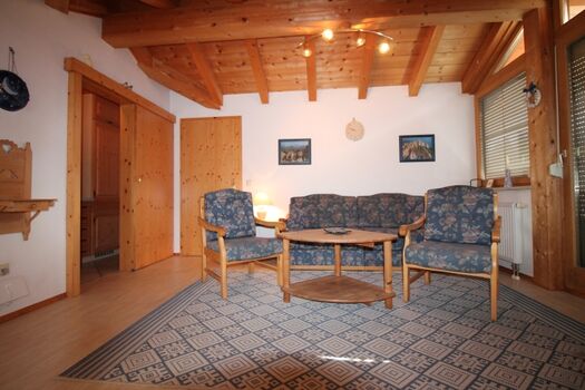 Die gepflegte Wohnung hat einen offenen Giebel mit schöner Holzbalkendecke und besteht aus einem Wohnzimmer mit gemütlicher Essecke, einer Sitzgruppe mit Schlafsofa, einer Einbauküche, einem Schlafzimmer mit Doppelbett und einem Wannenbad mit Duschvorrichtung und WC. Die Wohnung ist komplett ausgestattet für max. 3 Personen. KINDER und ein Haustier sind HERZLICH WILLKOMMEN!