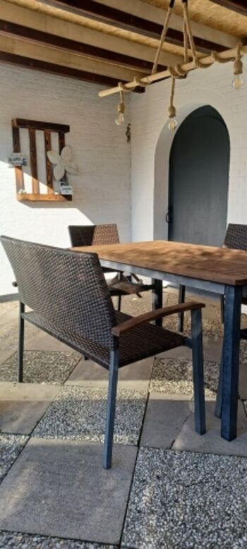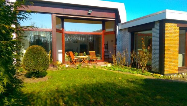 Sehr schöner Bungalow für bis zu 8 Personen mit 125 m2, modern und hochwertig ausgestattet, offener Kamin, 2 separate Schlafzimmer je mit Doppelbett, ein sehr großer offener Wohnbereich (ca. 70m2) inkl. Schlafnische mit zusätzlichen Schlafmöglichkeiten für 4 Personen und großer Fensterfront, halboffene Küche mit Komplettausstattung inkl. Geschirrspüler, Tassimo-Maschine etc., neues Bad und separates Gäste-WC sowie eigener eingezäunter und nicht einsehbarer Garten mit überdachter Terrasse.