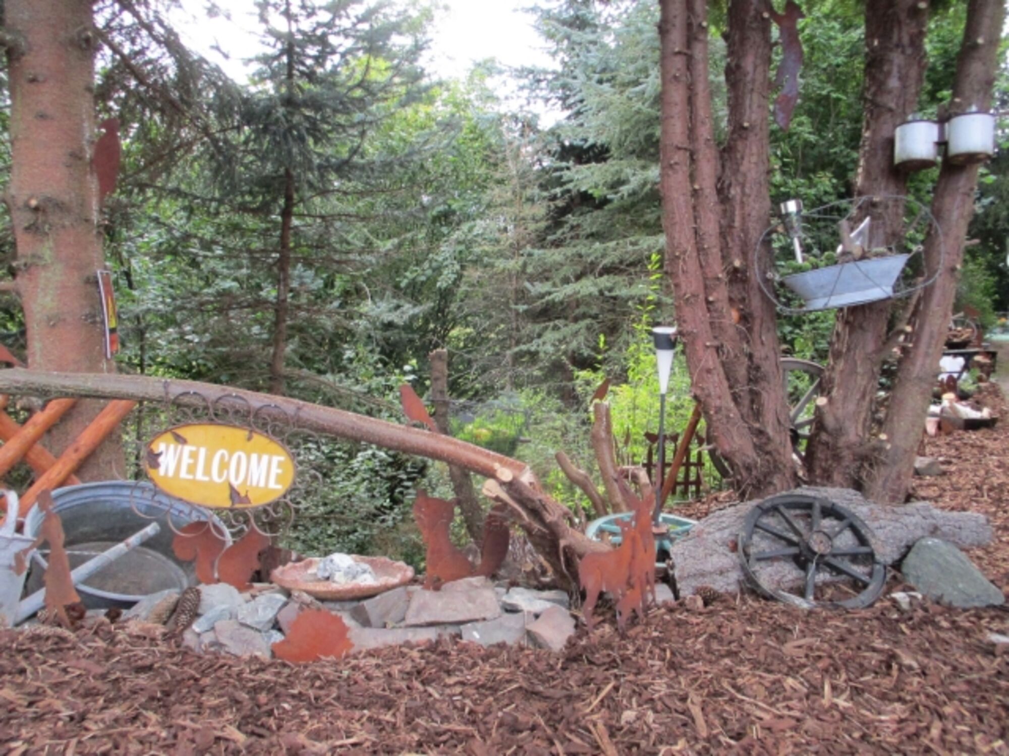 Die große eingezäunte " WALD - TERRASSE " hat einen neuen Anstrich bekommen und ist mit einem Strandkorb, 2 Relax-Liegen und 2 Sitzgruppen eingerichtet und liebevoll im NATUR-STIL mit " Waldbewohnern " dekoriert. Sie haben einen direkten Blick ins ROTHAARGEBIRGE. Genießen Sie schöne Tage/ Abende mit dezenter Terrassen Beleuchtung .