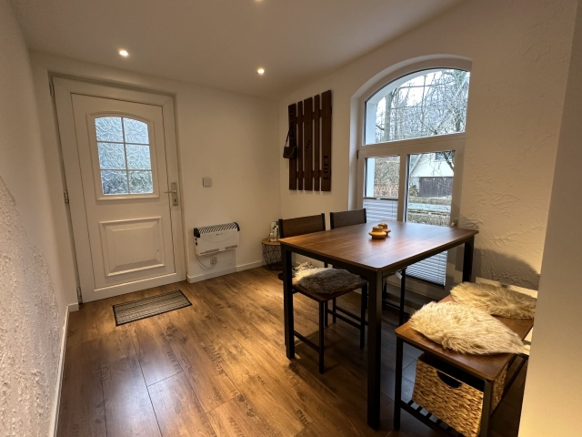 Man betritt das Haus durch einen kleinen Vorraum in dem es einen Schuhschrank und Garderobe gibt.