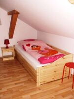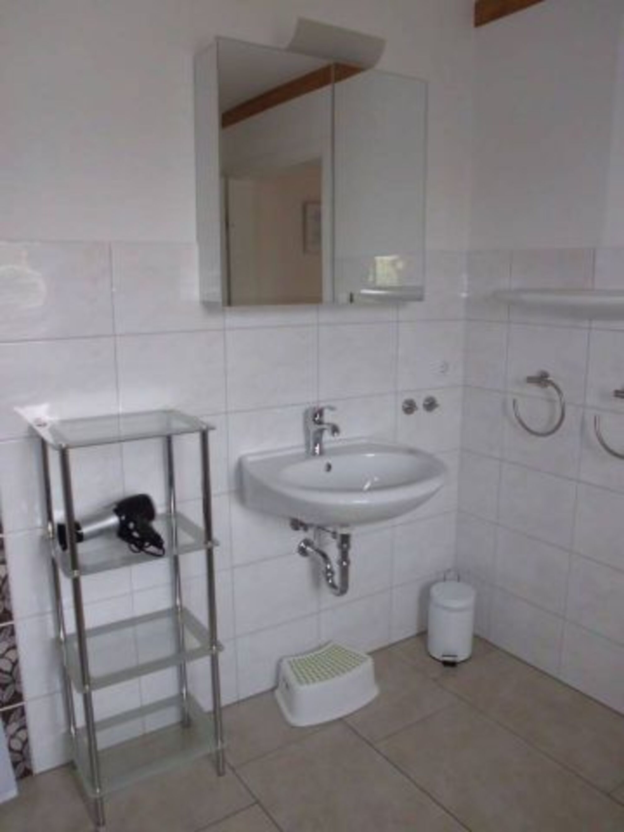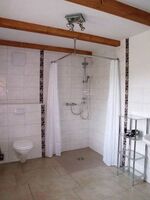 In der unteren Etage befindet sich ein Schlafzimmer und auch ein Bad, so dass auch Gäste mit Einschränkungen unser Haus bequem nutzen können.