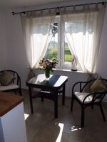 Dieses ist das ehemalige Wohnhaus eines kleinen Bauernhofes, wie er typisch war in unserer Region "Lieper Winkel". Es befindet sich in einer Dorfrandlage und ist nur ca. 500-800m von Achterwasser und Peenestrom entfernt. Es wird seit Mitte Juli 2014 erstvermietet und ist mit allem Komfort ausgestattet. Das Ferienhaus verfügt über 3 Schlafzimmer (2 Doppelschlafzimmer, 1 Kinderschlafzimmer), Wohn- Esszimmer mit kleinem Kamin, 2 Bädern, Komfortküche, Erkerbereich... Die gesamte untere Etage ist gefliest und mit Fußbodenheizung ausgestattet, ausserdem barrierefrei. In der oberen Etage ist allerdings mit geringeren Durchgangshöhen zu rechnen. Das Haus ist liebevoll eingerichtet mit Landhausmöbeln und trotzdem MODERN, ROMANTISCH und VERSPIELT. Kleine Gäste haben einen Hofeigenen Spielplatz direkt auf dem Grundstück.