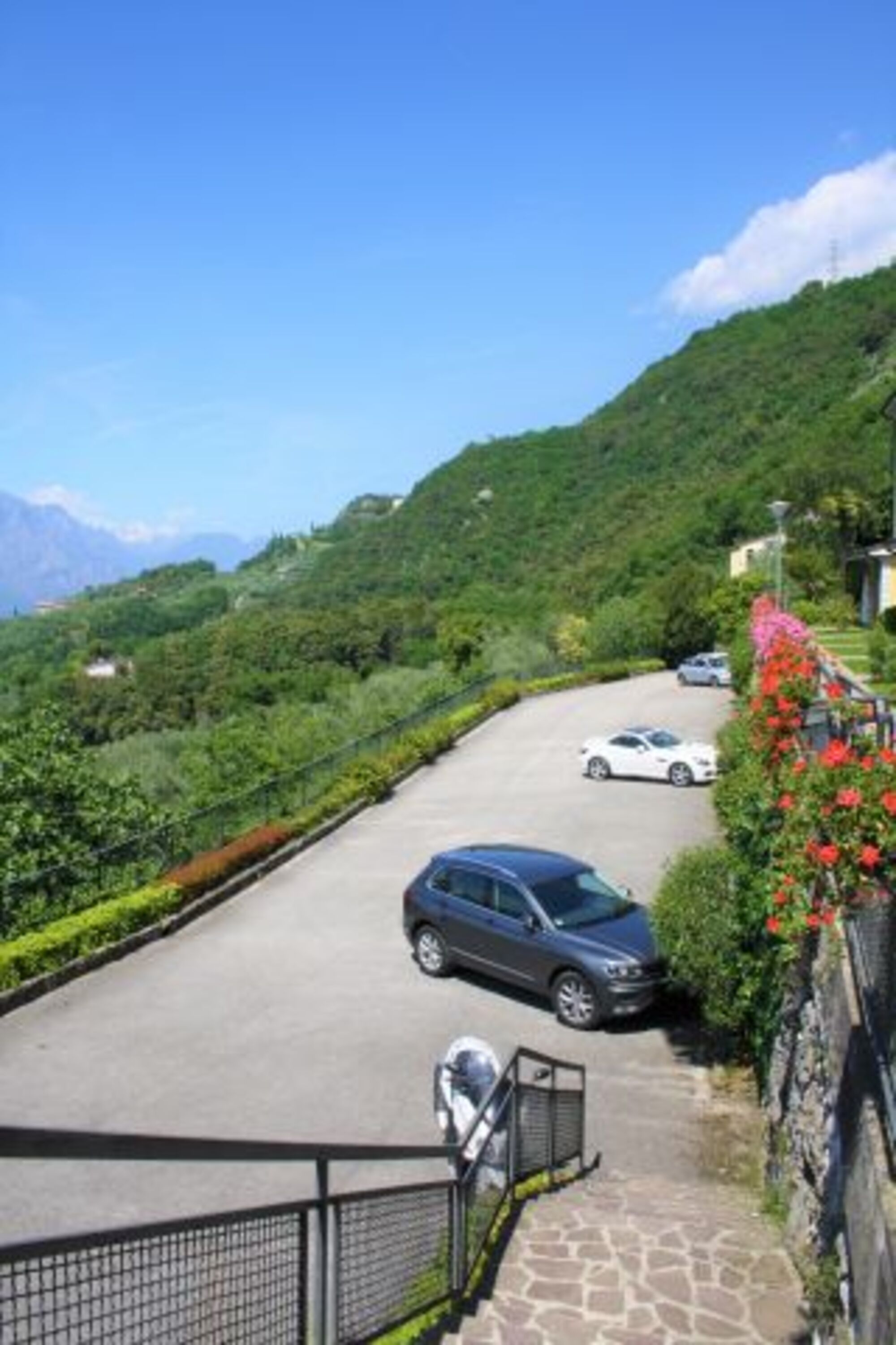 Ein großer Parkplatz für mehrere Pkw befindet sich direkt unterhalb der Ferienwohnung.