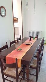 In der Ferienwohnung befindet sich u. a. ein großer Esstisch im Wohnraum für bis zu 6 Personen und ein SAT-LCD mit allen deutschen Programmen.