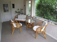 Der große Wohn-/Eßbereich ist mit Massivholzmöbeln, der einladende Wintergarten ist mit Rattan gemütlich ausgestattet.