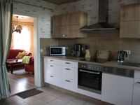 Keine Wünsche läßt unsere gut ausgestattete Küche offen. Spülmaschine, Mikrowelle, Elektroumluftherd mit Ceran, Kühl-/Gefrierkombi, kleine Sitzgruppe sowie Geschirr, Besteck und Gläser für 12 Pers. sind selbstverständlich.