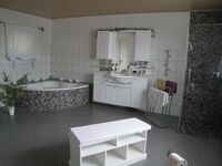 2 luxuriöse Bäder, ausgestattet mit Regenkopf-Duschen, sind auf beide Stockwerke aufgeteilt. Duschwannen ebenerdig, antirutsch beschichtet. Das Bad im EG verfügt zusätzlich über eine große Eckbadewanne.