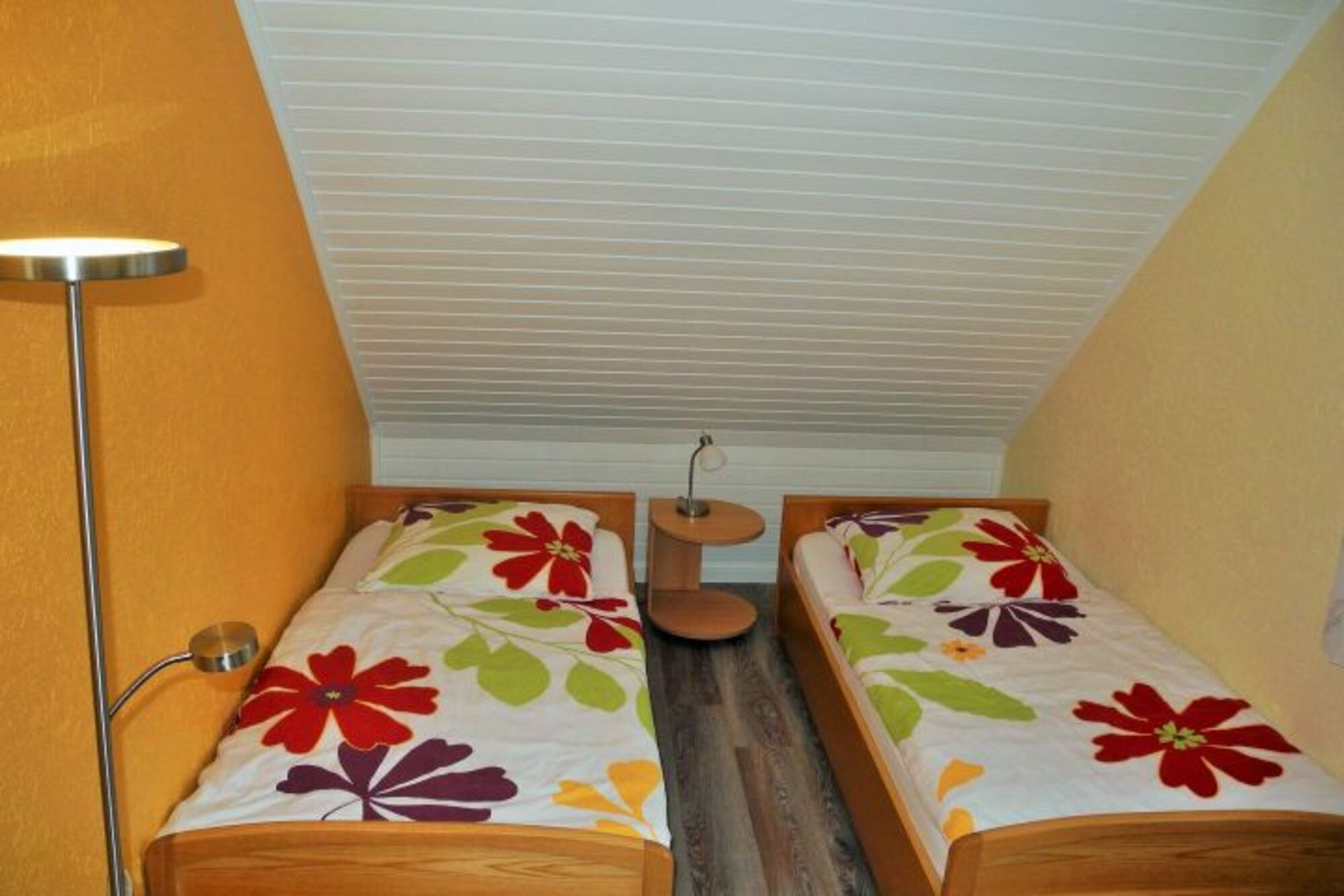 Im Obergeschoss befinden sich 3 Schlafzimmer. Ein Schlafzimmer mit einem Doppelbett (1 x 1,00m x 2,00m), ein zweites Schlafzimmer mit zwei einzelnen Betten von 1,00m x2,00m und ein drittes Schlafzimmer mit einem Doppelbett der Größe 2x 0,80m x 2,00m. Die Böden sind mit Laminat verlegt.