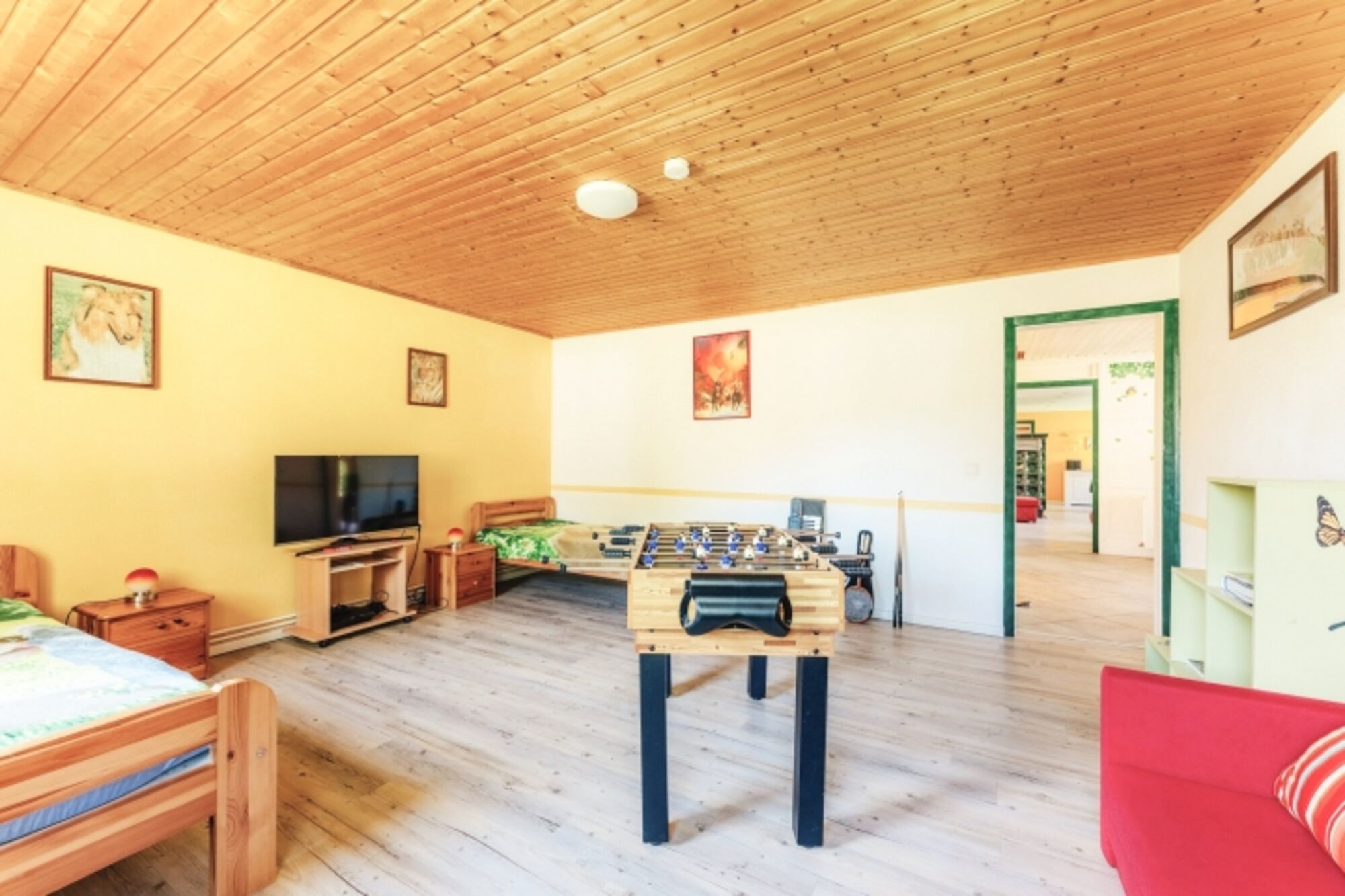 Dieses Zimmer ist zugleich auch Spielzimmer mit Kickertisch, Spielen, Lego , Bücher usw. Einzelbett, Leselampe am Bett, Fliegengitter