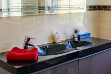 Aber nicht mit Rollstuhl befahrbar! Die Toiletten sind getrennt von den Duschbädern!! Waschbecken, Spiegel