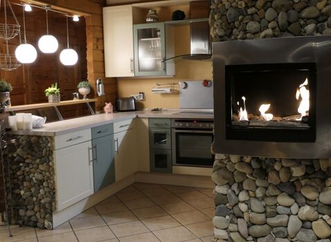 Cerankochfeld, Dunstabzugshaube, Gefrierschrank, Senseo-Kaffeeautomat, Eierkocher, Mixer, Waffeleisen, Korkenzieher / Flaschenöffner, Gewürze (Salz, Pfeffer, Zucker), Öl / Essig, Geschirrhandtücher, Mülltüten, TV in der Küche